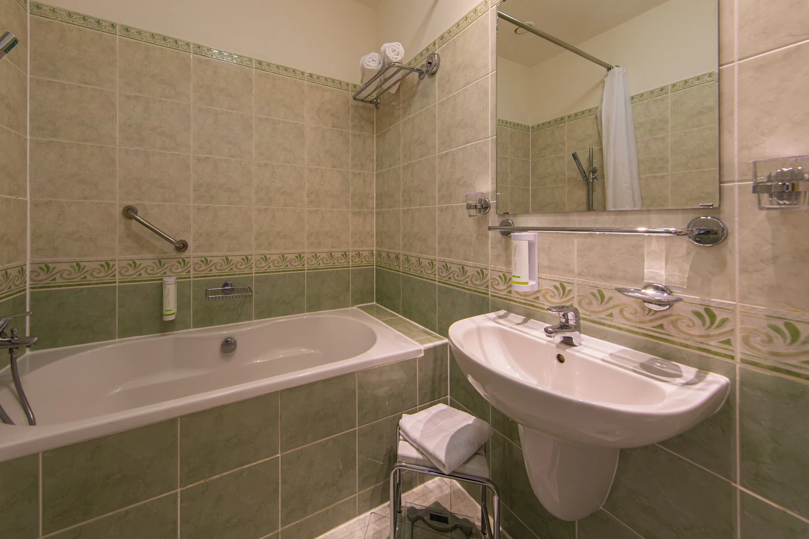 - Badezimmer mit Badewanne und Bidet (keine Dusche)